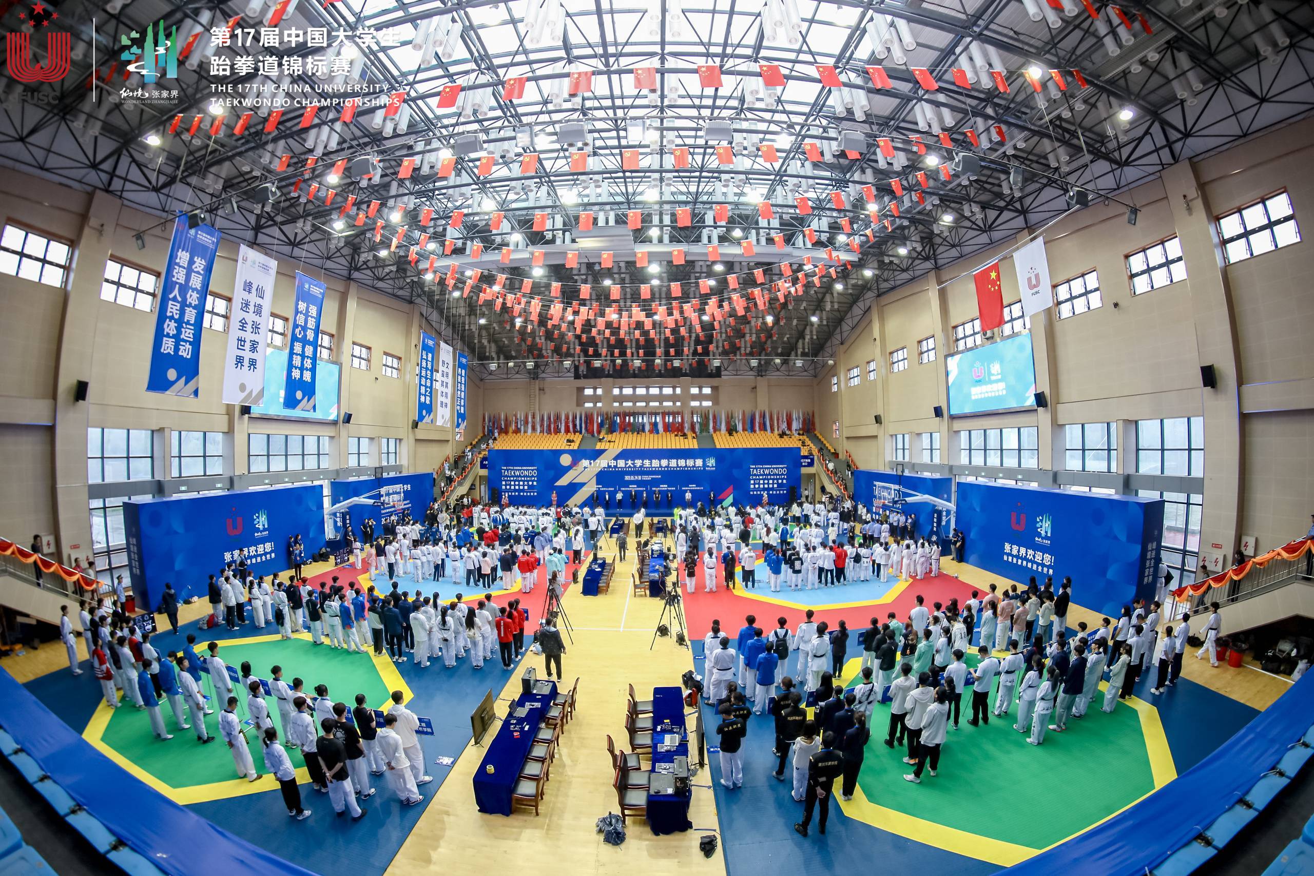 5月29日,第17屆中國(guó)大學(xué)生跆拳道錦標(biāo)賽在湖南省張家界市第一中學(xué)體育館圓滿(mǎn)落幕,本次比賽為期四天,共有來(lái)自浙江大學(xué)、中山大學(xué)、南開(kāi)大學(xué)、中國(guó)地質(zhì)大學(xué)等高校的185支隊(duì)伍,1500余名領(lǐng)隊(duì)、教練員、運(yùn)動(dòng)員。