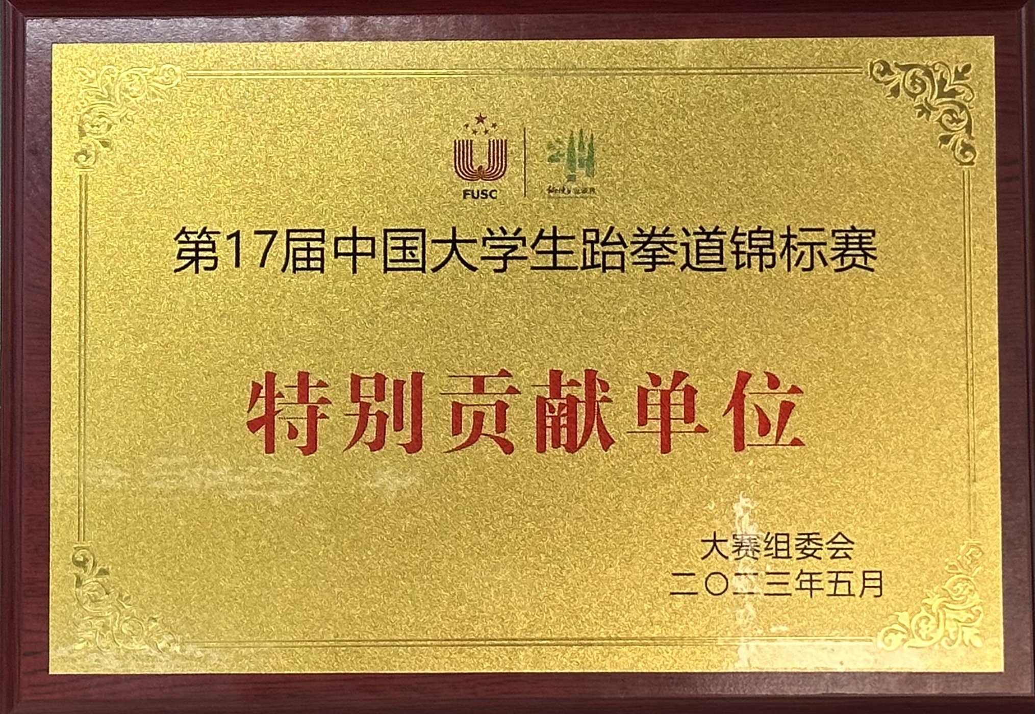 △我司被授予第17屆中國(guó)大學(xué)生跆拳道錦標(biāo)賽特別貢獻(xiàn)單位