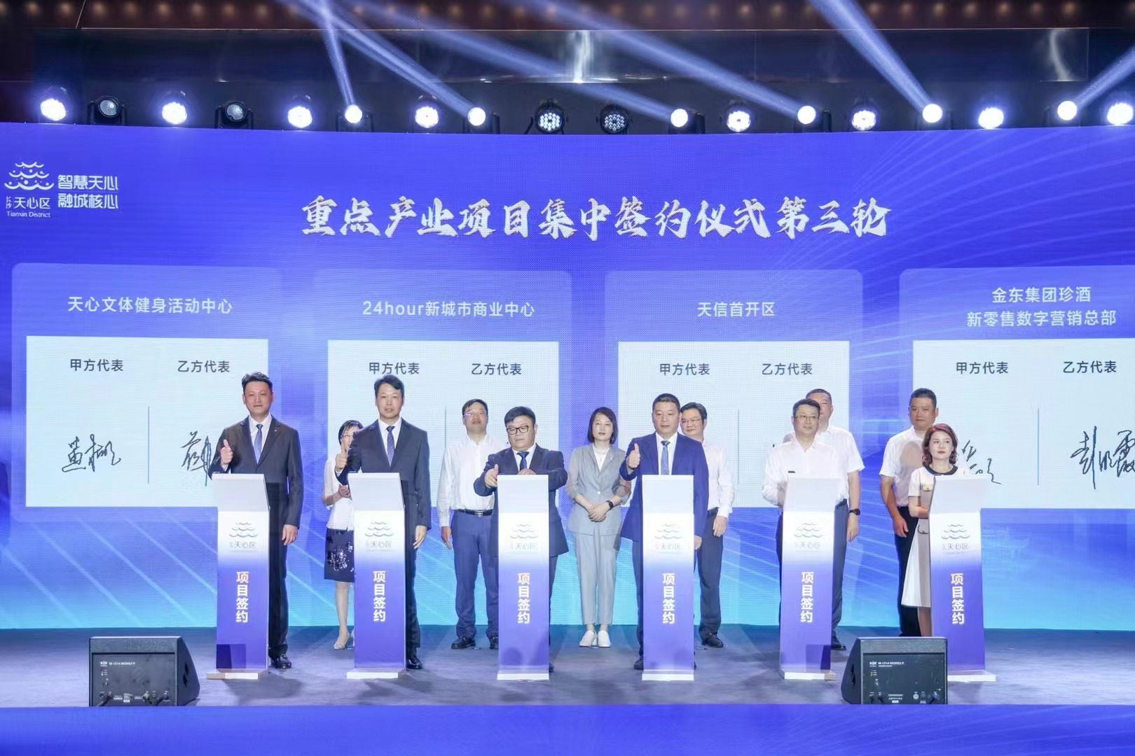 會場上,湘商代表共聚一堂,“招商顧問”紛紛上臺,推介天心、宣傳天心;“四新經(jīng)濟示范企業(yè)”授牌,12個重點招商項目簽約,總投資額近100億元,其中包括天心文投與我司共同布局區(qū)域體育消費新賽道—天心區(qū)文體活動中心項目。